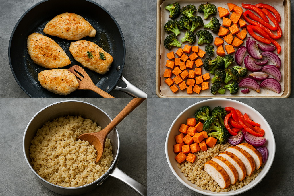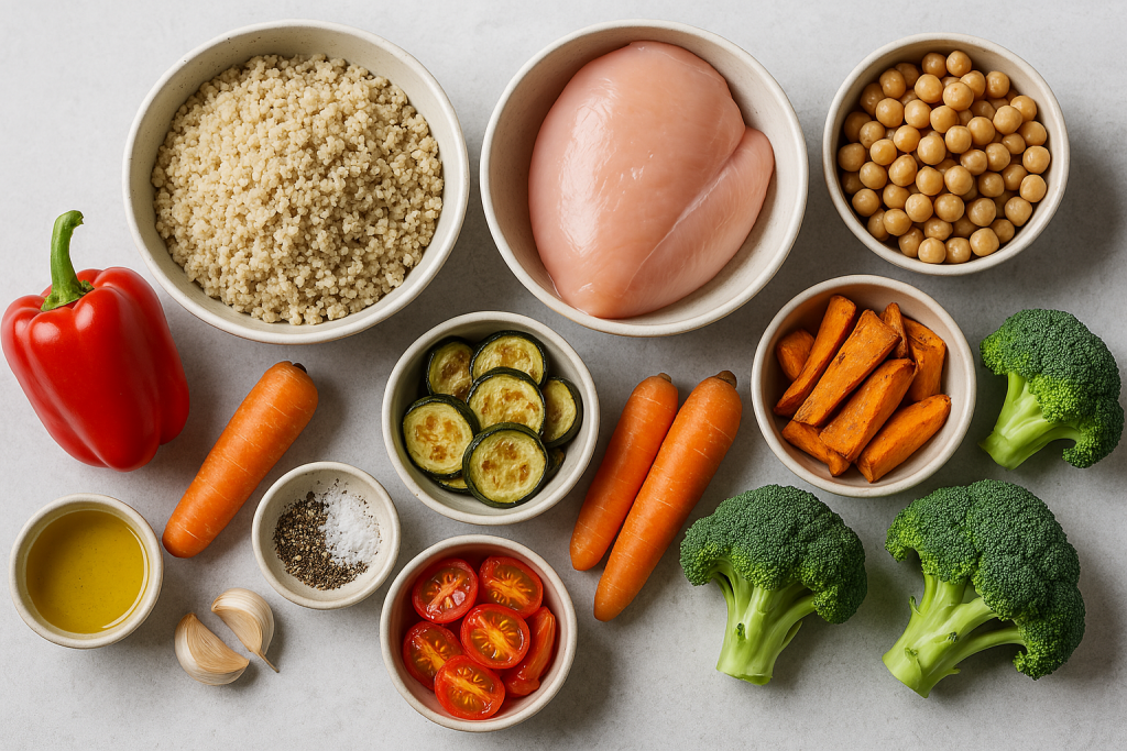Este bowl combina ingredientes sencillos y nutritivos para ofrecerte una comida completa, ideal para después del entrenamiento o como comida principal. La quinoa aporta proteínas vegetales y fibra, mientras que el pollo es una excelente fuente de proteína magra. Las verduras asadas añaden color, sabor y antioxidantes. Todo en un plato saciante, sin complicaciones.